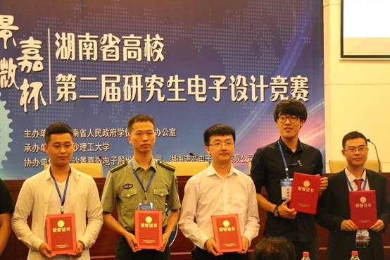 6月2日,由湖南省学位办主办、长沙理工大学承办、长沙景嘉微电子股份有限公司和湖南进芯电子科技有限公司协办的湖南省第二届研究生电子设计大赛在长沙理工大学落下帷幕。公司组织的6支代表队(w88win体育官网入口5支,机械公司1支)与国防科技大学、中南大学、湖南大学等14所高校的83支队伍同场竞技。经过全体人员的共同努力和顽强拼搏,最终获得一等奖和三等奖各1项,实现了研究生电子设计竞赛一等奖“零”的突破,童耀南和陈松老师荣获优秀指导老师。