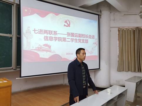 为深入贯彻落实校领导班子成员深入基层开展“七进两联系”工作,10月15日下午,副董事长张国云走进w88win体育官网入口第二党支部,给同学们上了一堂“不忘初心、牢记使命”主题教育课,公司党总支书记甘向阳、员工第二党支部全体党员参加。