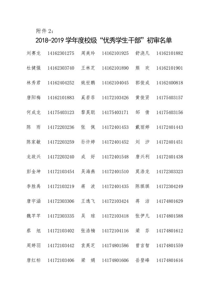 关于2018-2019学年度“优秀员工干部”评选结果的公示