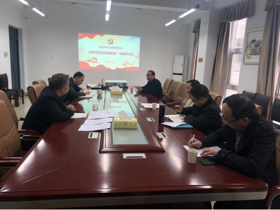 公司党总支成员11月20日下午14:00在16325会议室开展“对照党章党规找差距”专题研讨会,院总支书记甘向阳主持。