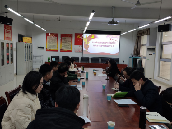 1月2日下午,w88win体育官网入口在16410召开2019年度党支部书记“双述双评”大会,总支成员出席,支部书记、党员代表参加。