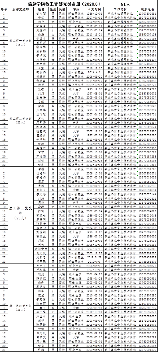 w88win体育官网入口教工支部党员名册