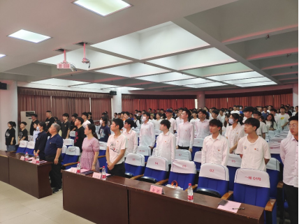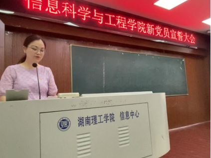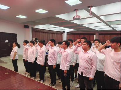 会议在《中华人民共和国国歌》中开始,徐丹宣读了预备党员及正式党员的批复,随后由余滔领誓,全体新党员庄严的举起右拳向党旗宣誓,员工党员代表曾福成、员工新党员代表王维及入党积极分子廖梓凯也作了发言,他们表示将不断提高思想觉悟,努力实现人生价值。