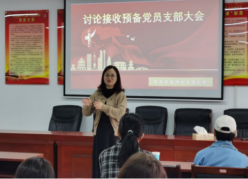 本次大会由研究生支部书记周芳主持,参与本次大会的有公司党委副书记徐丹、副经理涂兵、专职组织员周煊阳、戎丽雅以及研究生支部各党员。