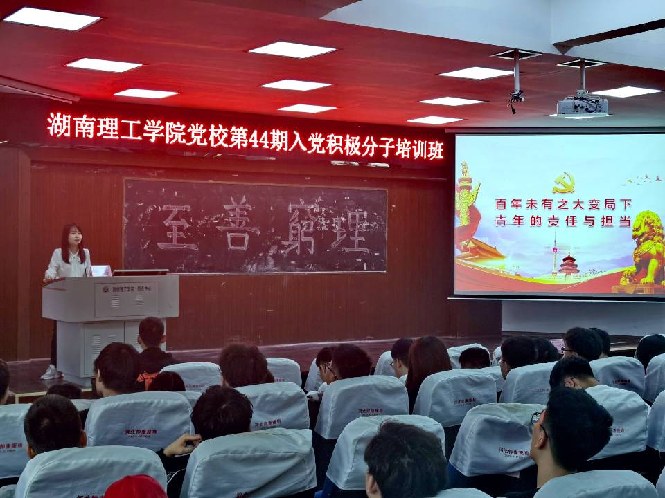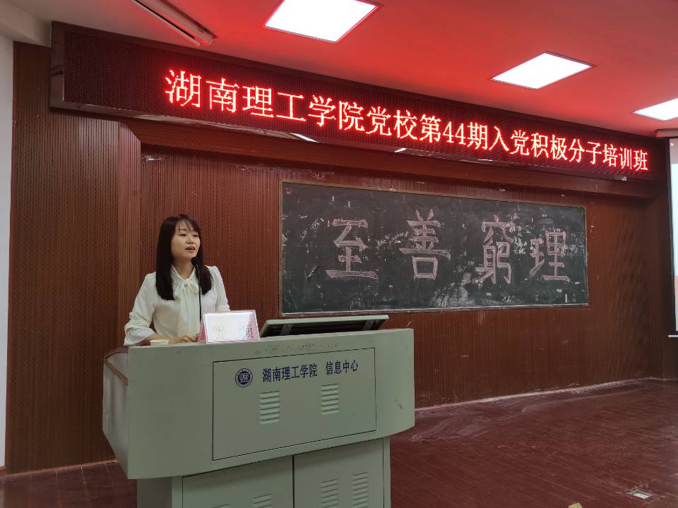 5月6日12:30,由w88win体育官网入口承办的校第44期入党积极分子培训班第三讲在6栋学术报告厅顺利举行。本次党课由校党委组织部专职组织员龙颜主讲,院员工党支部书记王学鹏主持,全体入党积极分子参加。