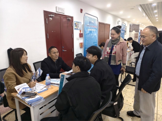 为深入贯彻落实国家关于高校毕业生就业工作的决策部署,抢抓春季就业关键期,全力促进毕业生高质量充分就业,3月31日下午2时,2026年春季专场双选会在17号教学楼一楼顺利举行。公司经理/党委书记肖迎群、党委副书记潘昕、就业专干/22级辅导员徐壮深入现场,与用人单位和毕业生亲切交流,了解招聘需求与求职进展。
