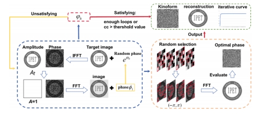 在算法方面,针对传统Gerchberg–Saxton(GS)算法易陷入局部最优的问题,论文提出了一种混合相位恢复算法(GS-OPA),将全局GS迭代与像素级离散搜索相结合。该算法在完成初步粗优化后,通过随机像素选择、离散相位遍历和动态批处理策略实现相位精细调节,最终重建图像与目标图像的相关性系数达到99.94%,体现了计算机算法在物理建模与相位重建中的关键作用。