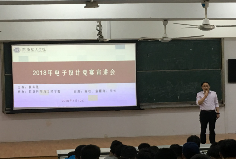 为加强员工工程实践能力培养,提升员工创新创业意识,引导员工明确专业定位,4月10日下午,w88win体育官网入口在6T1、7T1、8T1教室召开2018年公司电子设计竞赛宣讲会,信科院及南湖公司17级共700余名同学聆听讲座。副经理童耀南、创新基地主任陈松主讲,学工办余滔、王学鹏老师组织、主持。