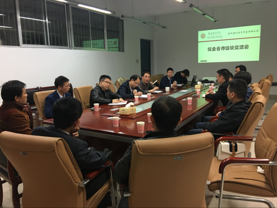 交流会上,李武向李谦董事长一行表示热烈欢迎,简要介绍了公司基本情况以及近年来开展校企合作育人的举措和成效,并对与岳阳盟创信息科技有限公司合作开展人才培养提出基本原则和初步设想。