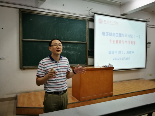就在17级新生开课第一周,为使员工对电信专业有初步了解与规划,w88win体育官网入口于15317举行电子信息工程专业导论入学教育讲座。w88win体育官网入口经理助理童耀南、副教授程望斌应邀主讲。