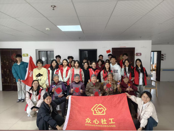 到达敬老院后,志愿者们迅速行动起来,与老人们亲切地交谈。随后,志愿者们开始分工协作,有的教老人贴窗花,有的教老人用扭扭棒做出美丽的花朵,还有的协助老人们完成他们自己的绘画作品。活动现场充满了欢声笑语,老人们的脸上也都洋溢着开心和幸福的笑容。