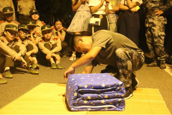 晚训时间一到,新生们便发现军训场地上一床被子躺在凉席上,教官和助教们正开始演示教学。娴熟的动作,仔细的指导,一床软被就这样在简简单单的“叠、压、捋”几个动作下变成了方方正正的豆腐块。助教们还表示,豆腐块可以利用周围很多的工具来完成。新生们大为惊奇,跃跃欲试。一位新生表示:“原来军训豆腐块可以用一卡通来完成,这真是神奇又有趣。”