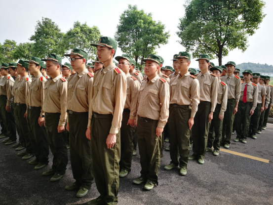 比起往常舒适安逸的生活,今天较长时间的军姿站立考验着每位信息学子的耐力与定力。挺胸收腹,两眼平视前方,两膝紧并,双手中指紧贴裤子中缝……种种标准军姿要领都受到教官的严格督促,同学们也没有懈怠,一一自觉按照教官的示范动作坚持着。中途,个别身体不适的同学在休息调整片刻后仍坚持融入队伍,与大家一起完成任务。