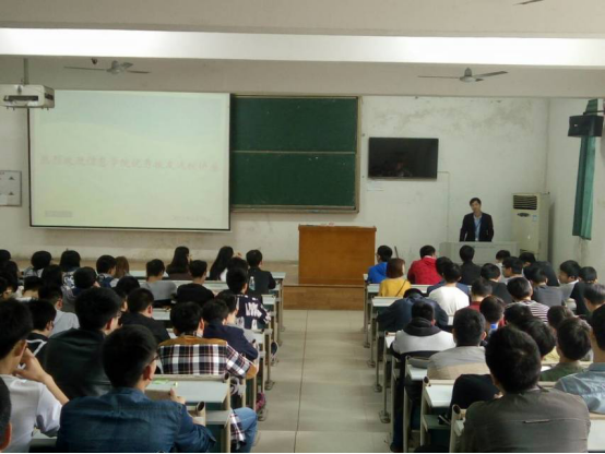 讲座临近尾声,南京嘉华科技有限公司湖南区域总经理丁海明向大家介绍了他所经营公司的基本情况,并以谢清宝员工可贵的成长经历鼓励同学们生命不止,奋斗不息。在现场同学们的热烈掌声中,此次讲座成功落下帷幕。