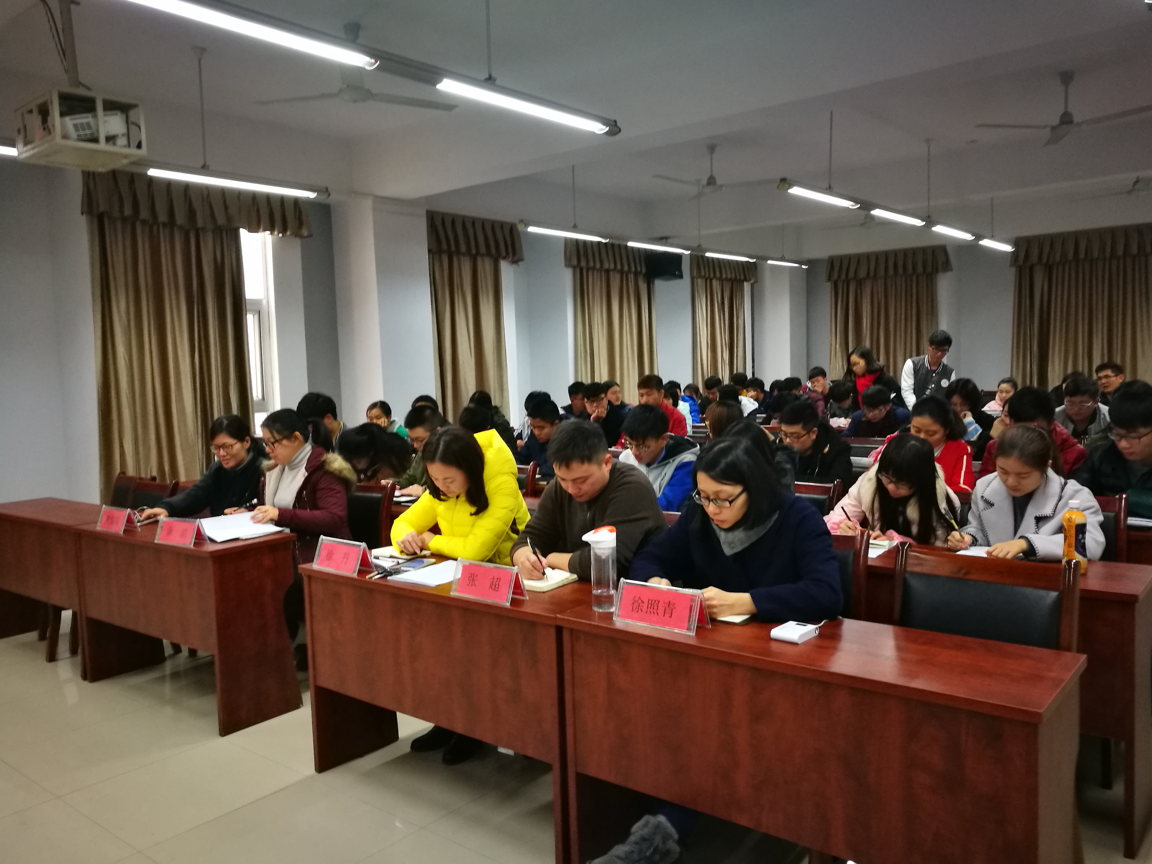 2016年11月29日12:20,为促进公司团学分会工作更好开展,公司“讲奉献、有作为”团学工作指导会于16410举行,公司党总支副书记徐丹老师,学工办主任张超老师,组织员徐照青老师、周煊阳老师,团总支书记余滔老师以及全体院干参加此次会议。