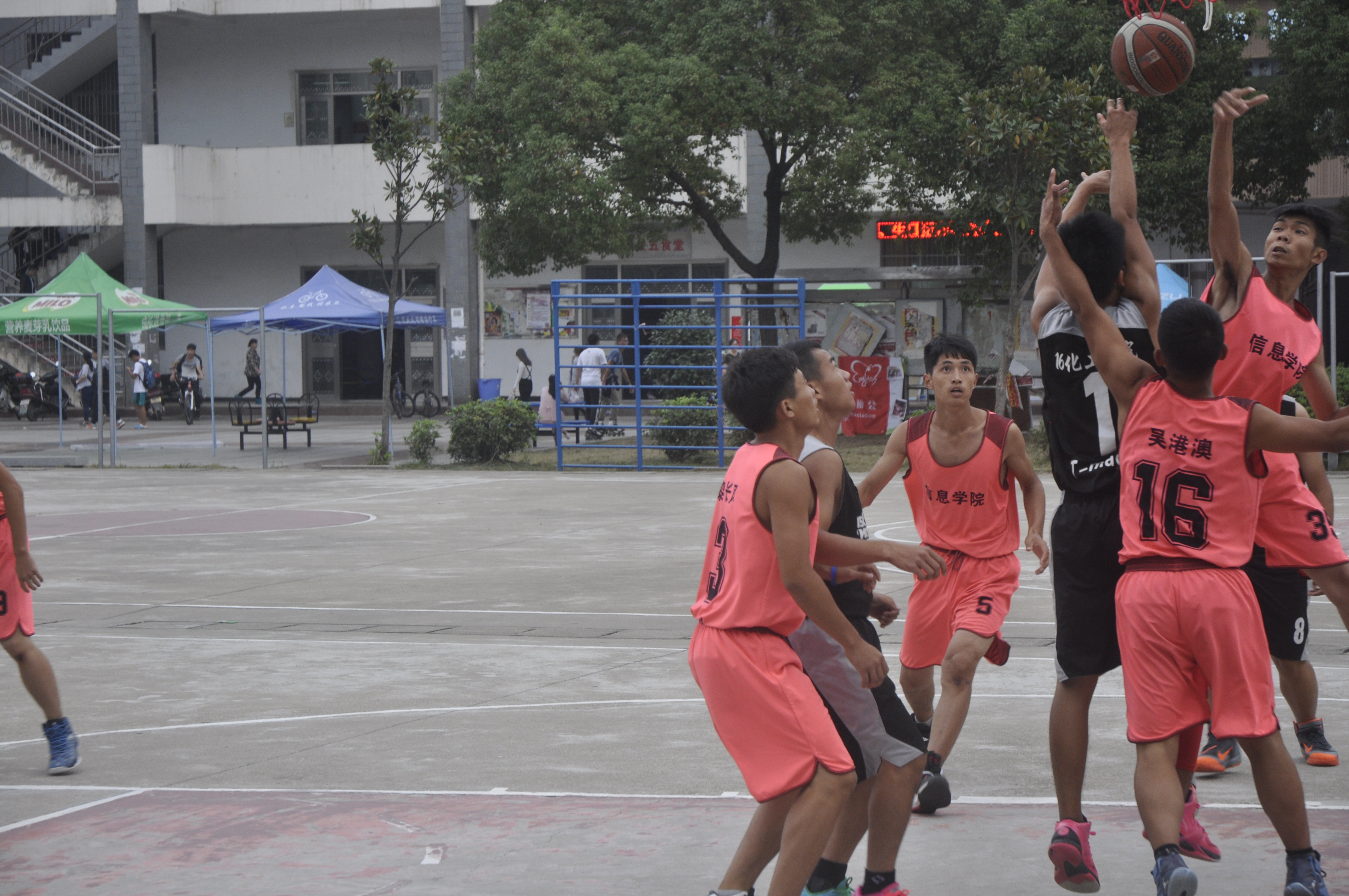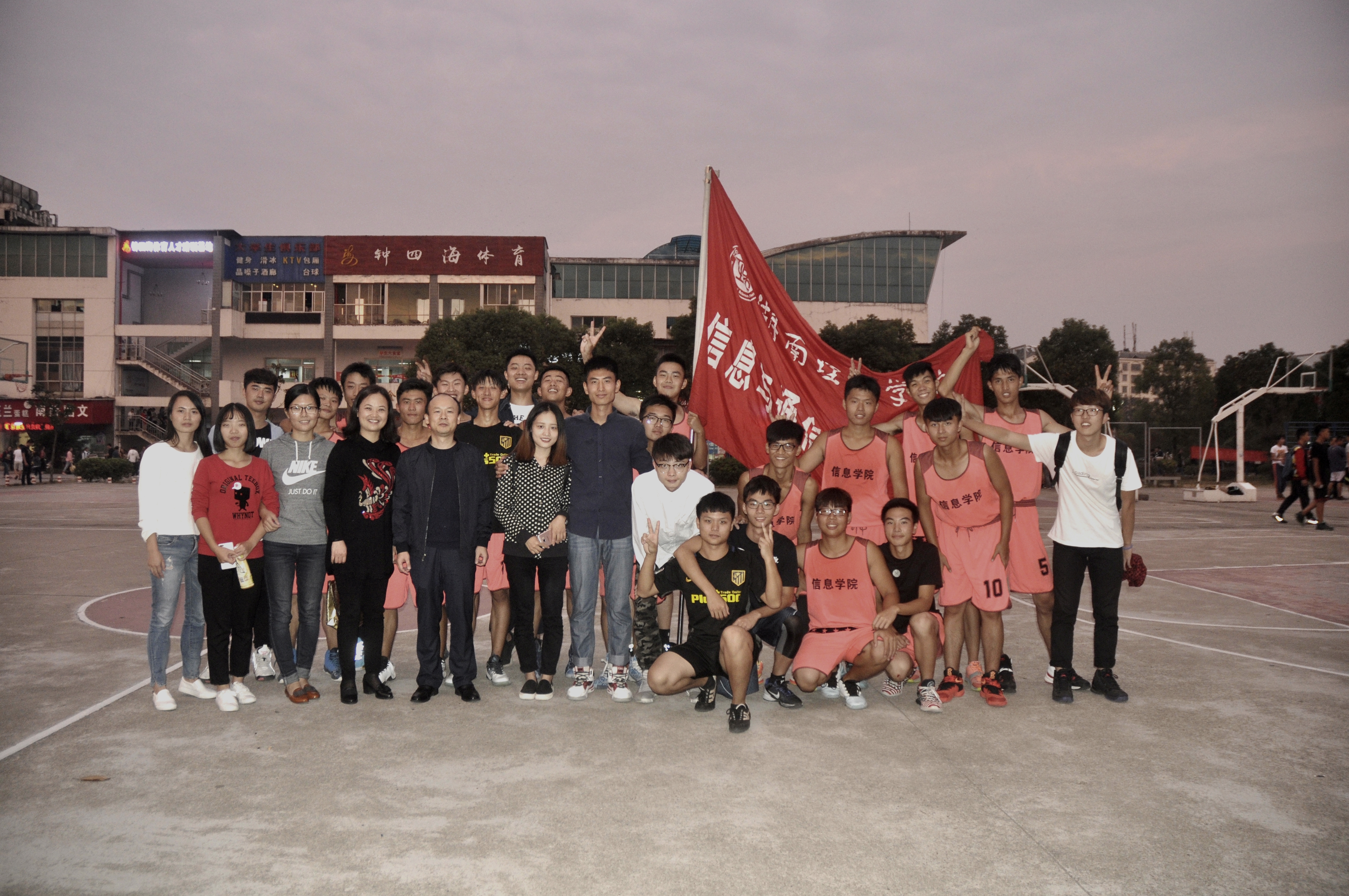 2016年10月18日下午五点,w88win体育官网入口16级男子篮球“新生杯”总决赛如期在篮球场进行。公司党总支书记张泰来、党总支副书记徐丹、学工办主任张超、16级辅导员周煊阳和辅导员余滔老师来到现场给新生们加油,气氛火热,呐喊连连。