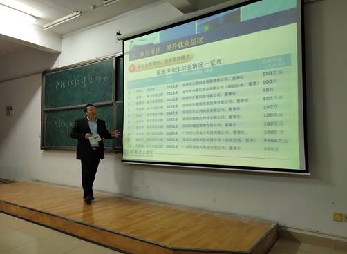 他说:“山外有山,楼外有楼,人外有人,做学问,搞科研功夫在平时,成功靠努力,花儿为什么这么红,因为它是血染的风采,希望同学们不忘初心,静心努力,再创辉煌。”