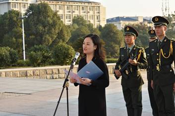 最后,徐丹进行国旗下讲话。她首先介绍了过去一年里w88win体育官网入口的快速发展历程,总结了公司学科竞赛的获奖情况,随后她通过一连串提问引发全体同学的深思,“你的奋斗目标是什么?你想获得的进步是什么?如何学习别人的长处?怎样让自己更快乐?”在这一系列问题的引导下,同学们认真积极思考,进一步明确了大学学习和生活的目标。最后徐丹对全体同学提出四点希望“一是饱读圣贤之书,常行君子之事。二是胸怀大爱之心,恪守文明公约。三是常思肩负之责,永存自信之风。四是牢记安全知识,确保健康成长。”