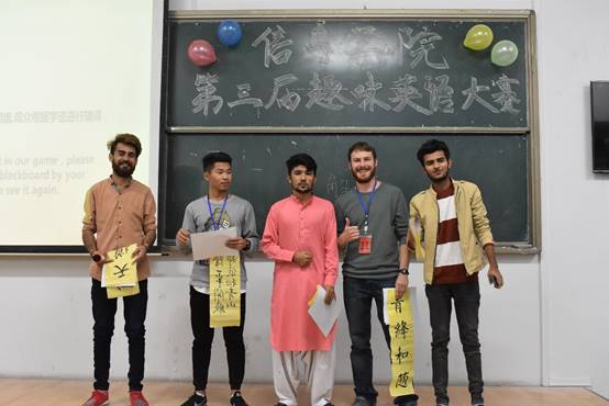 2018年11月2日晚7:00,w88win体育官网入口第三届趣味英语大赛在9T1教室开展,公司15级辅导员盛莉莎、18级辅导员李亦波出席指导。本次比赛还特邀13位外国友人参与活动。