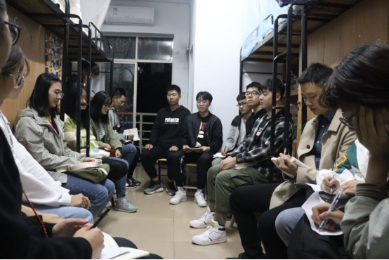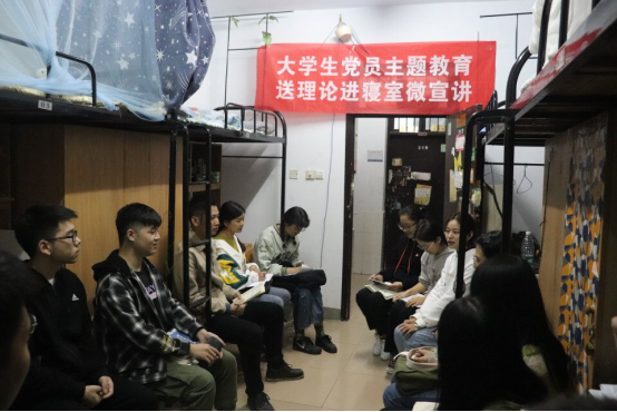 10月31日19:30,体育公司党总支书副书记喻俊、辅导员易薇、黄志带领体育公司604学理论示范寝室员工代表邓娟、吴平及化工公司员工代表姚蕾组成的“不忘初心、牢记使命”学理论微宣讲团,深入w88win体育官网入口13栋217党员寝室开展“精准扶贫,脱贫攻坚”微宣讲活动,w88win体育官网入口辅导员王学鹏、荀仕杰出席,16级部分党员代表参加。