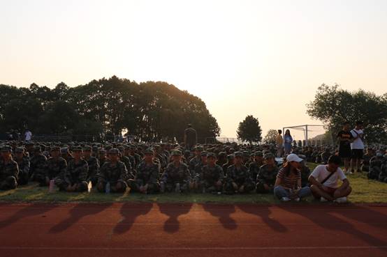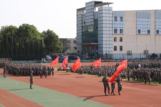 军训场上每天都会响起分列式进行曲,激昂的鼓点让人血脉膨胀。但今天有点不一样,今天的人儿要去田径场“真刀真枪”的演习了,今天的分列式进行曲是一种挑战更是一首赞歌。田径场上每一个人眼神坚定、英姿飒爽、神采奕奕。每一次的抬腿,踢腿,主席台上都能感受到青春少年们肌肉的力量。跑道上院旗迎风飘扬,同学们展翅高飞。新生们的努力,湖理的蓝天都看在眼里。相信新生们会为公司劈波斩棘,赢得荣誉。