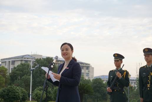 徐丹在国旗下讲话,她开篇提出四个问题,借由问题希望同学们可以进行深入思考并树立目标。在学习、生活和工作中可以做到“饱读圣贤之书,常行君子之道”、“胸怀大爱之心,恪守人民之约”、“常思肩负之责,永存自信之心”、“牢记安全知识,确保健康成长”这四点。她祝愿同学们都可以成为志存高远、勇于担当、勤奋钻研的新时代优秀青年,书写无愧于时代和人民的人生新篇章。