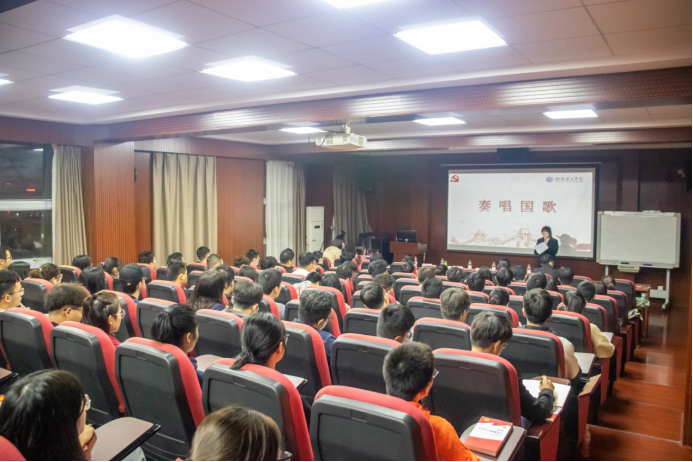 2020年10月18日19:00,信息公司承办的党校第43期入党积极分子培训班第一讲在逸夫楼16521顺利举行。本次授课由公司党委委员、副董事长张国云主讲,公司党委副书记徐丹、院专职组织员盛莉莎,员工党支部书记周煊阳、余滔、王学鹏出席,全体入党积极分子参加。