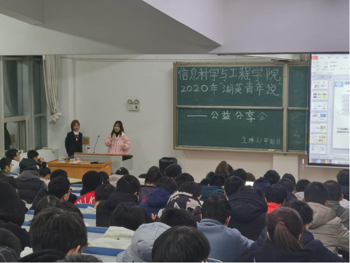 11月28日19:00,2020级湖英青年说公益分享会在15208举行。本次活动由李钟萱主持,平斯羽主讲。