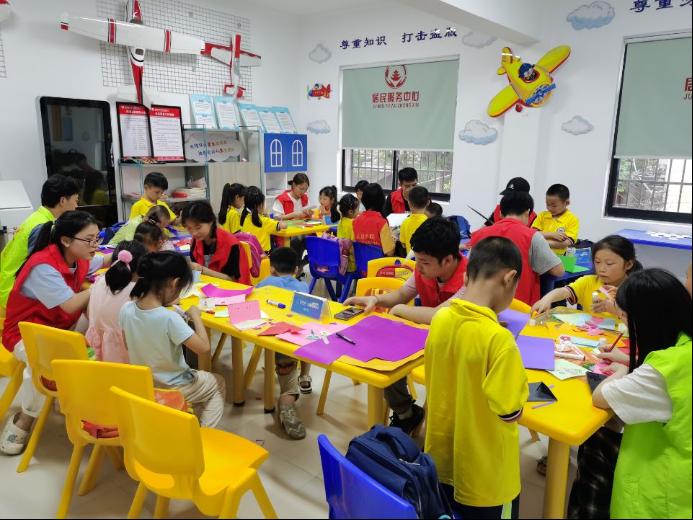 志愿者和孩子们在欢声笑语中完成了贺卡的制作,大家清理完活动室卫生后合影留念,孩子们自豪地举着自己的贺卡,上面都是他们满满的心意。