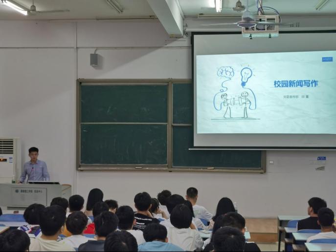 田夏讲述了新闻写作的概念、基本内容及校园新闻的特点,并就“怎样写新闻”从新闻的基本要素、新闻的常用体裁以及新闻写作的注意事项等三个方面展开讲解。他通过展示优秀新闻作品,依次分享了“消息”、“通讯”、“活动类新闻稿”等体裁的写作技巧,生动活泼的讲授方式和干货满满的讲座内容赢得现场掌声阵阵。