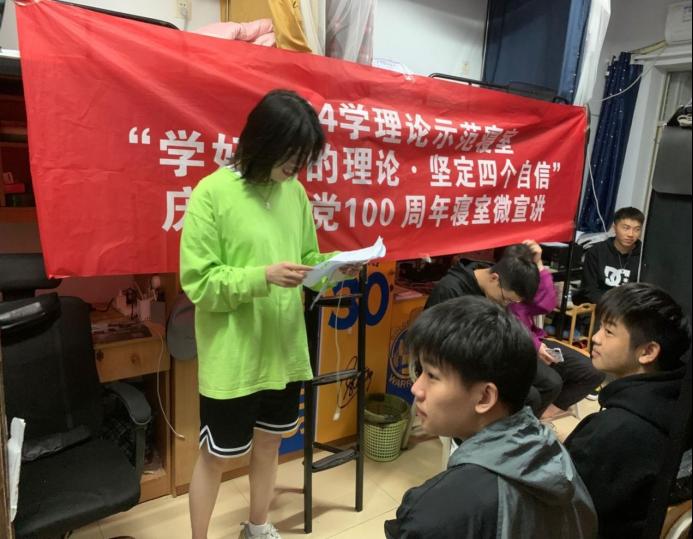 5月19日晚,“学好党的理论,坚定四个自信”庆祝建党100周年寝室微宣讲在17317寝室顺利开讲。宣讲会由体育公司左一婷、全灵珊主讲,公司党委副书记徐丹,w88win体育官网入口员工第二党支部书记余滔出席,党员、员工干部、群众员工作为部分学习代表参加。