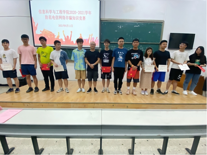 本次竞赛以“道路千万条,防范第一条”为主题,旨在通过竞赛传播防骗知识,提高同学们防范电信网络诈骗的意识。竞赛开始前,李钟萱为参赛选手讲解比赛规则及注意事项。竞赛四人为一组,分为必答题与抢答题环节,按得分情况决出前三名,必答题环节每四组进行一轮比赛,取积分前四名的队伍进入抢答环节,两两对决。经计分统计,“破浪队”荣获一等奖,“湖理防诈骗小分队”荣获二等奖,“不知道对不队”荣获三等奖。