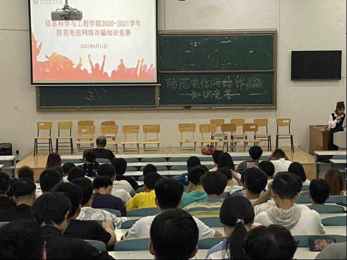 6月11日19:30在9T2举行w88win体育官网入口防范电信网络诈骗知识竞赛。18级辅导员李亦波出席,院员工会文娱女生部李钟萱主持,共计12组队伍参赛。