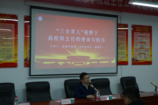 11月16日下午3点,w88win体育官网入口举行“青春向党 共话成长”班主任工作专题培训,特邀副董事长徐振祥教授主讲。公司党委书记甘向阳、经理童耀南、党委副书记徐丹及公司全体班主任参加培训。培训由徐丹主持。