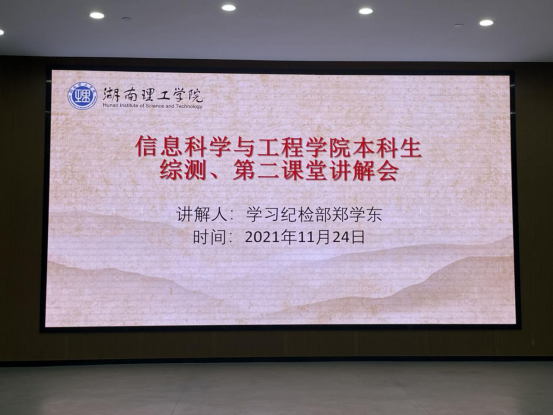 11月24日20:00,w88win体育官网入口在17118教室针对新生开展《综合测评细则》及第二课堂相关规定讲解会。21级辅导员王学鹏、余滔出席,学习纪检部郑学东及素质拓展部刘影主讲。