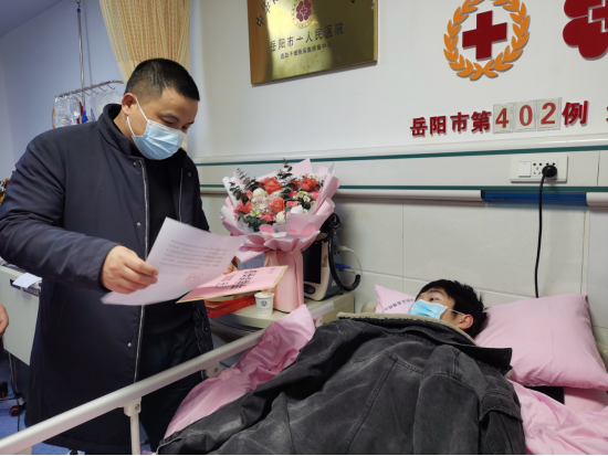 1月10日,在岳阳市中心医院造血干细胞采集室内,w88win体育官网入口员工唐斌成功捐献造血干细胞,成为岳阳市第402例、2022年第1例捐献造血干细胞的志愿者。