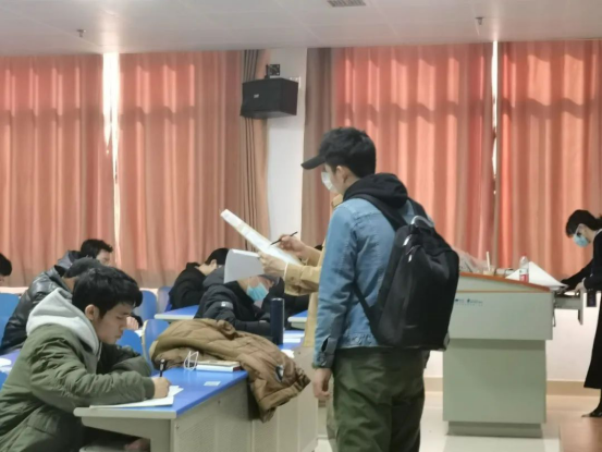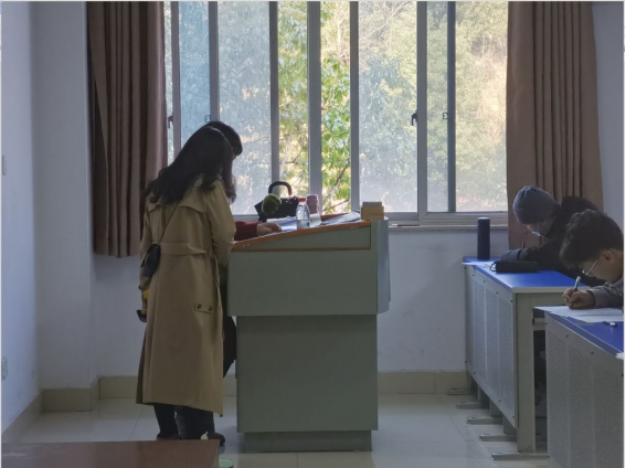 为确保考试顺利进行,徐丹带领学工办老师早早抵达教学楼,清点w88win体育官网入口员工考场人数,查看考场考风考纪状况,维护考场秩序。