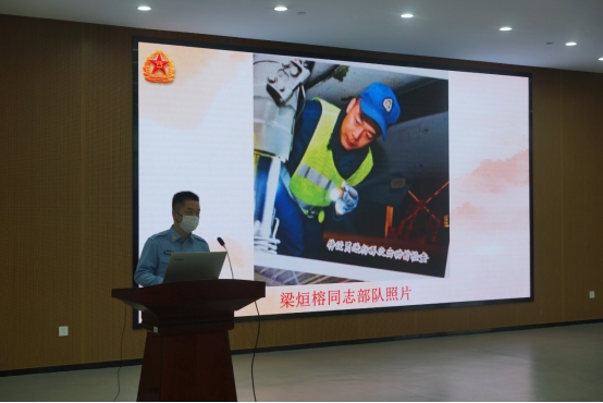 会议特别邀请退伍员工代表梁烜榕、彭青宇进行分享发言。梁烜榕声情并茂地分享了自己精彩的的军旅生涯。他讲述了自己在新兵连的苦中有乐;在连队服役时面对突发事件的冷静处理,并表示:五年的从军生活,踏遍祖国的大好河山,带过新兵,得过荣誉,这些经历都是他人生中最宝贵的财富。梁烜榕鼓励有想法、有梦想的同学勇敢地参军,实现自我价值。