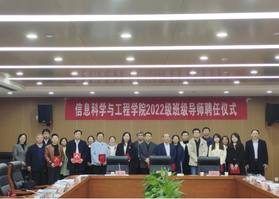 甘向阳、童耀南为各班级导师颁发聘书并合影留念。