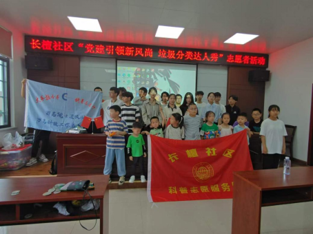 5月19日下午,w88win体育官网入口“爱雏鸟”志愿团队来到长檀社区开展“党建引领新风尚 垃圾分类达人秀”志愿服务活动。