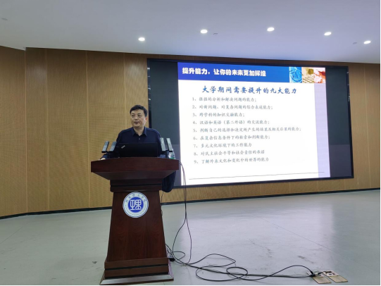毛伟以“遇见更好的自己”为主题,从学会适应、让生活更加明亮,构建自信、让当下充满阳光,提升能力、让未来更加辉煌,真心相待、徜徉在爱的海洋四个方面进行讲解。毛伟介绍了心理健康的重要性及其对个人生活的影响,通过生动的案例分享了面对压力、焦虑等负面情绪时的有效应对策略,提醒同学们正确认识自己的情绪价值、培育积极心态、学会解决问题、寻求专业帮助等途径建立良好心态。