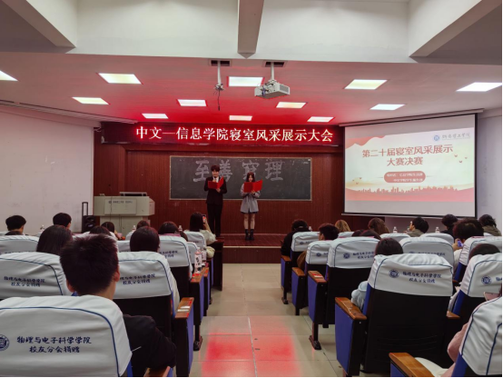 为营造良好的寝室文化环境,进一步加强校园文化建设,11月15日18:40,w88win体育官网入口与中文公司于6栋报告厅联合举办第二十届寝室风采展示大赛决赛。w88win体育官网入口辅导员徐壮、王艳芬及全体主席团成员担任评委,本次大会由w88win体育官网入口陈轩杰和中文公司李仙妞主持。
