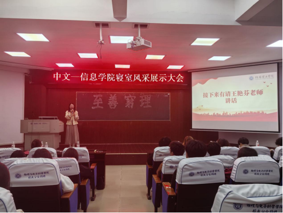 最后,王艳芬进行总结,指出同学们在大赛中展示了青春活力、寝室生活的创意与热情、对集体生活的热爱与珍惜,希望同学们做到三点:一是珍惜缘分、收获友谊,二是持续创新、勇于探索,三是团结协作、共同成长。期待同学们传承寝室文化节所包含的团结、友爱、创新、安全精神内涵,在未来的道路上更加自信、坚韧、勇敢。