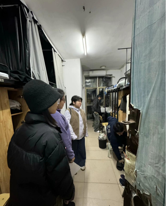 随后,辅导员老师对宿舍卫生进行检查,对寝室电线、插口、电器等安全隐患进行排查,并提醒同学们注意个人卫生,保持良好的生活环境,注意用电安全,防止火灾等事故的发生。