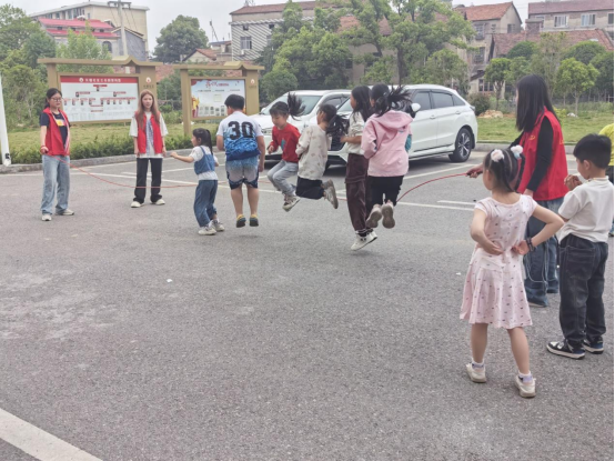 活动现场,志愿者团队精心设计了三个小游戏——多人跳绳、投壶游戏、踢毽擂台赛,并参与维持现场秩序,在志愿者的帮助下小朋友们开始了欢快的游戏时光,现场充满了欢声笑语。