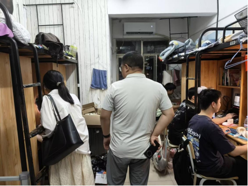 付亚子、王艳芬带队,员工党支部网格员队伍分组前往分管寝室检查。检查中,老师们与员工亲切交流,询问困难,对问题提出整改要求;员工党支部网格员队伍仔细排查,提醒同学们在假期中要增强安全意识,强调相关注意事项。