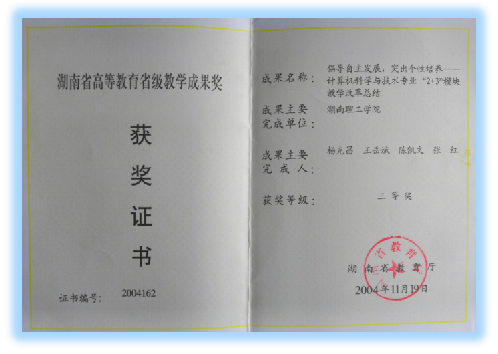 【2004年教师获湖南省高等教育省级教学成果三等奖】 15